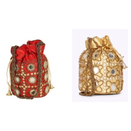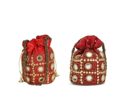 Combo – Designer Embroidered Potli Bag – Red & Golden