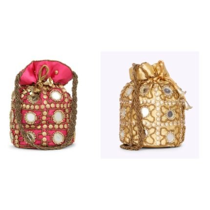 This product is a combo of tow Embellished potli bags having wrist loop 1 main compartment each with drawstring closure.