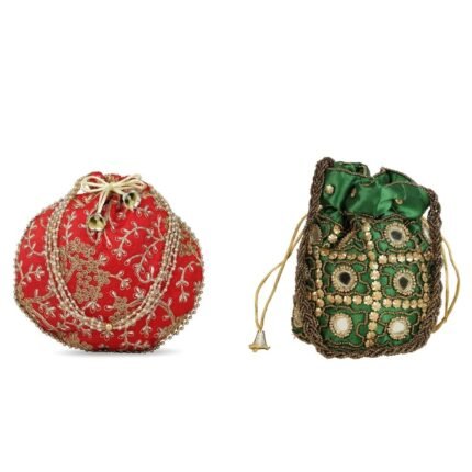 Combo – Designer Embroidered Potli Bag – Red & Green