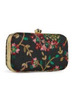 Black & Goldembroidered box clutches Has shoulder strap, 1 main compartment with twist closure