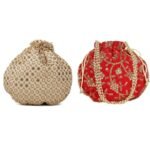 This product is a combo of tow Embellished potli bags having wrist loop 1 main compartment each with drawstring closure. Size & Fit Size of each potli bag : 9 x 9 x 3 Inch (Length x Width x Depth ) Material & Care Fabric Wipe with clean, dry cloth