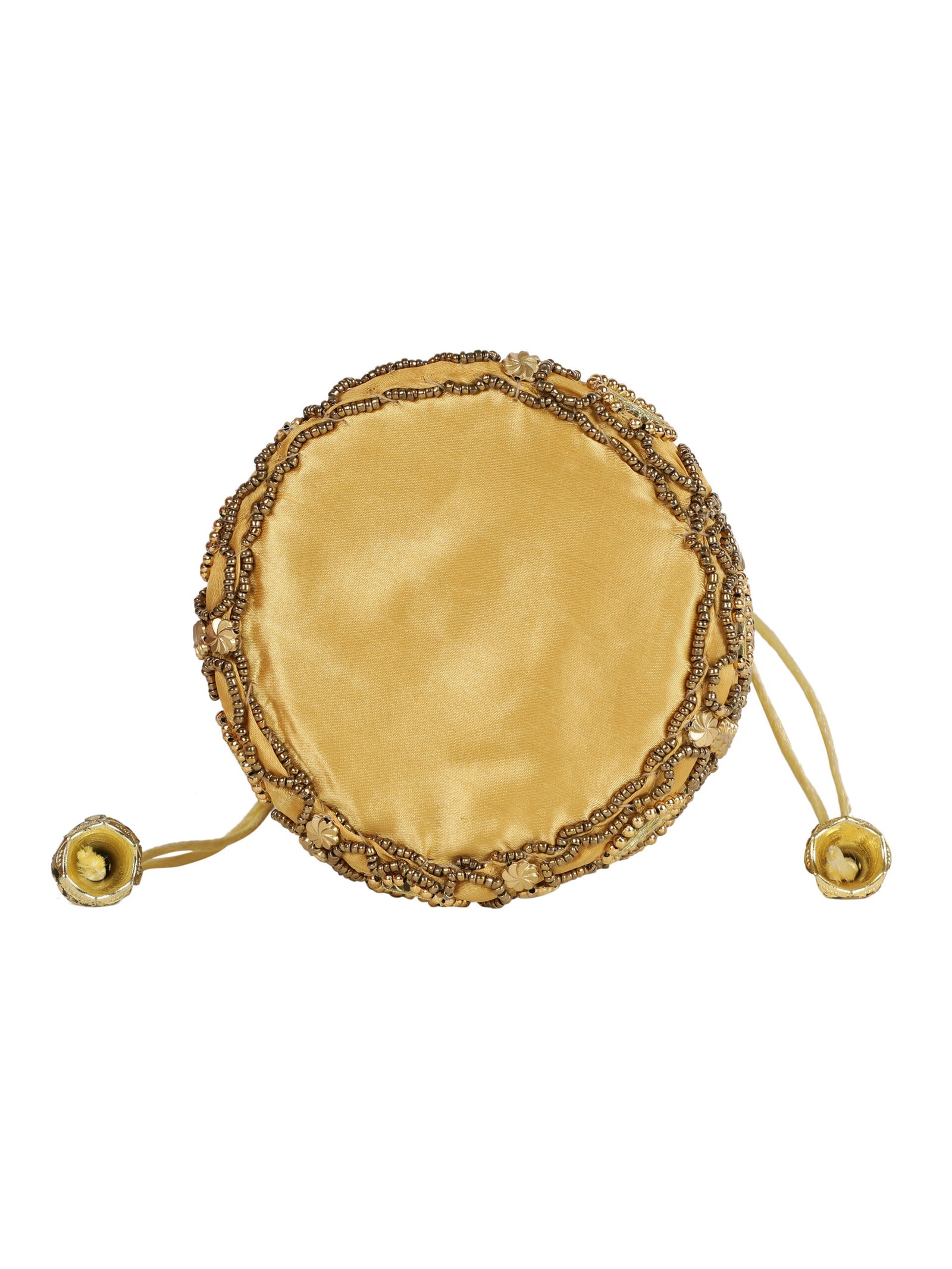 Gold-toned embellished potli clutches Has wrist loop 1 main compartment with drawstring closure