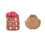 Combo of Golden & Beige Designer Embroidered Potli Bag