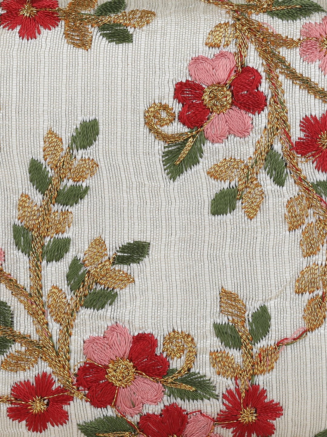 Off White Embroidered Box clutches, Has gold chain shoulder strap, 1 main compartment with twist closure