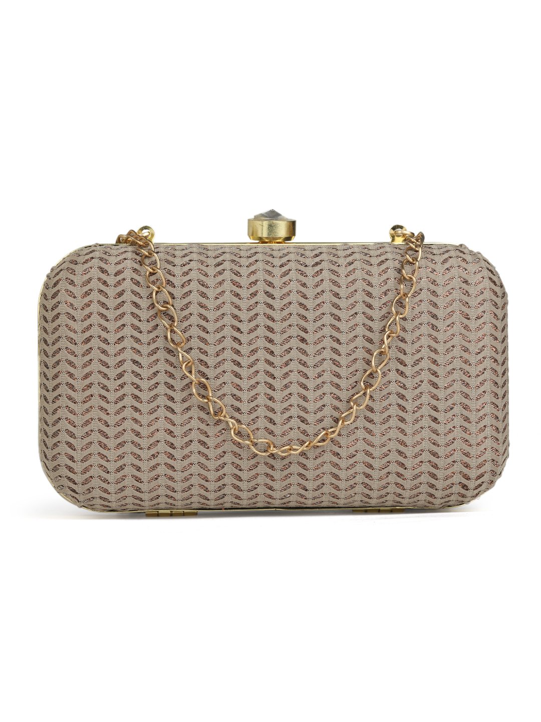 Peachembroidered box clutches Has shoulder strap, 1 main compartment with twist closure