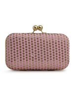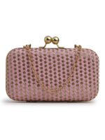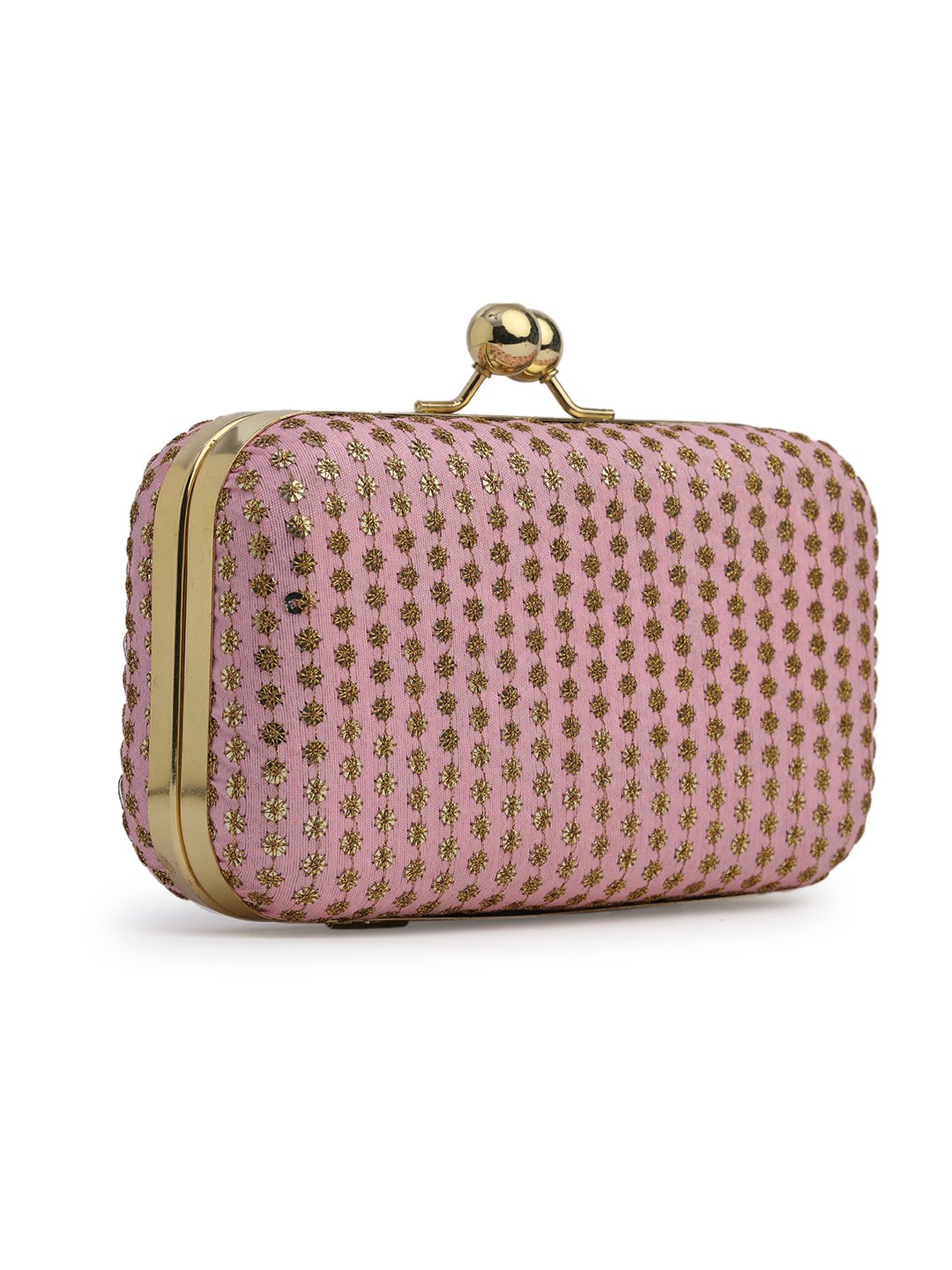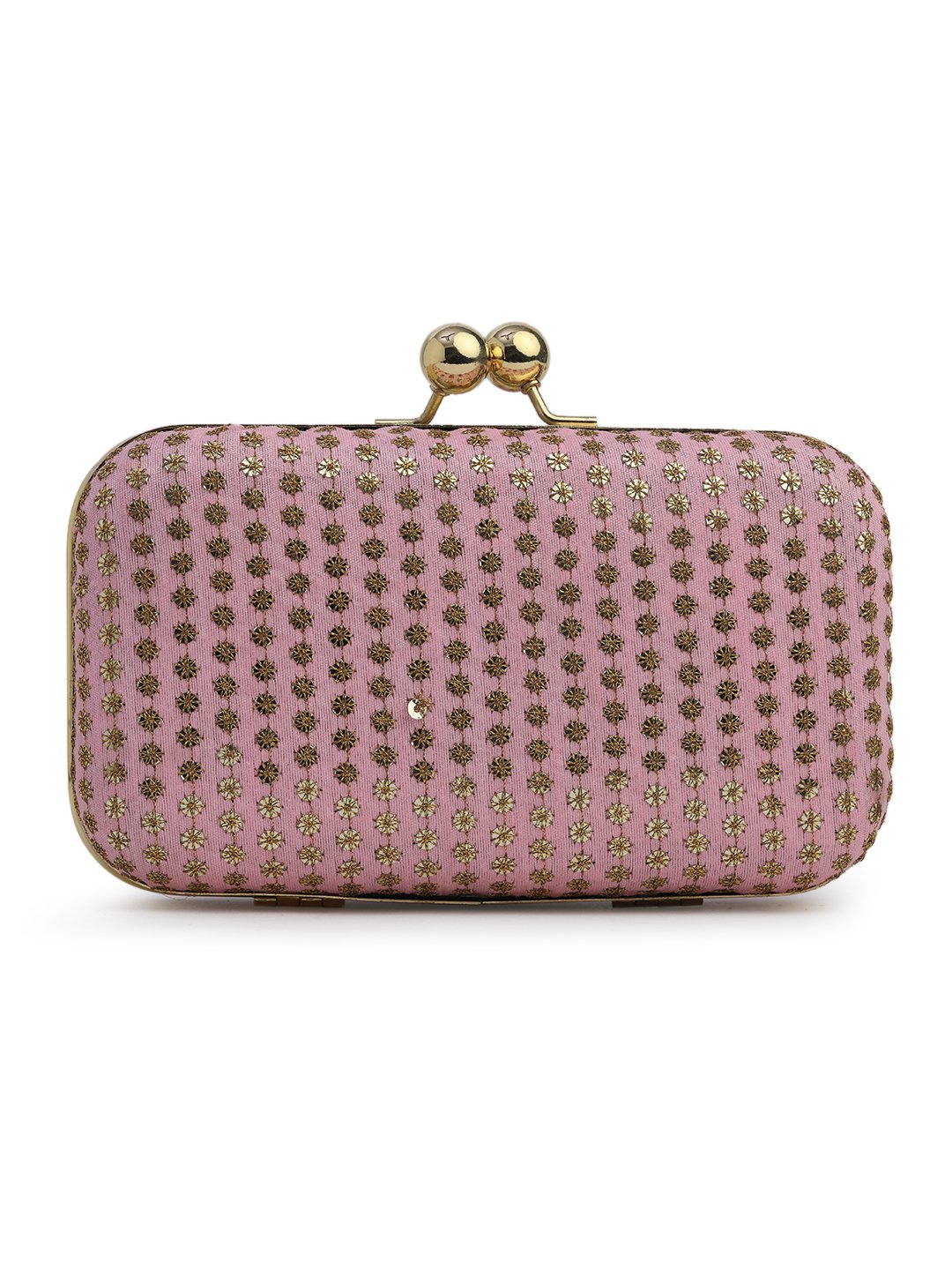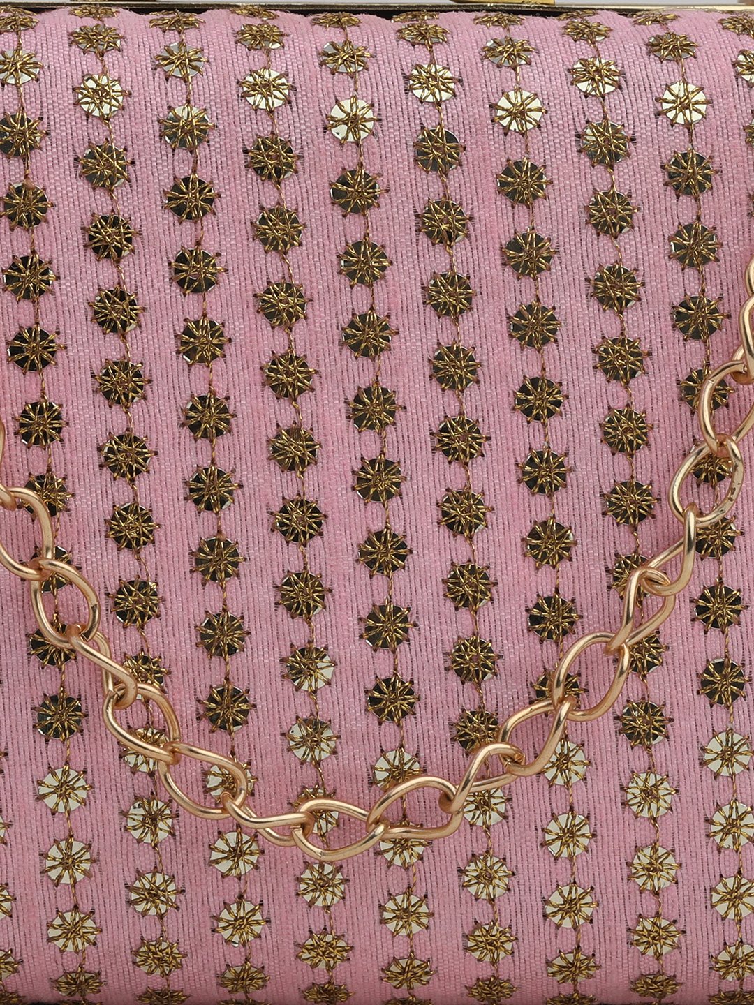 Pink & Gold Embroidered Box clutches, Has gold chain shoulder strap, 1 main compartment with Kiss closure